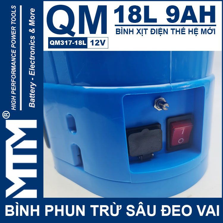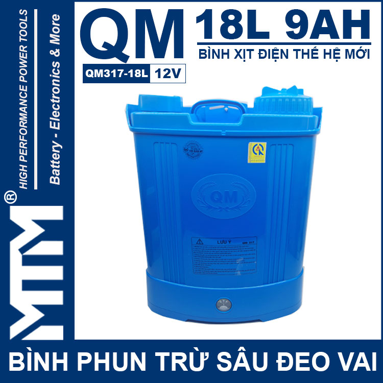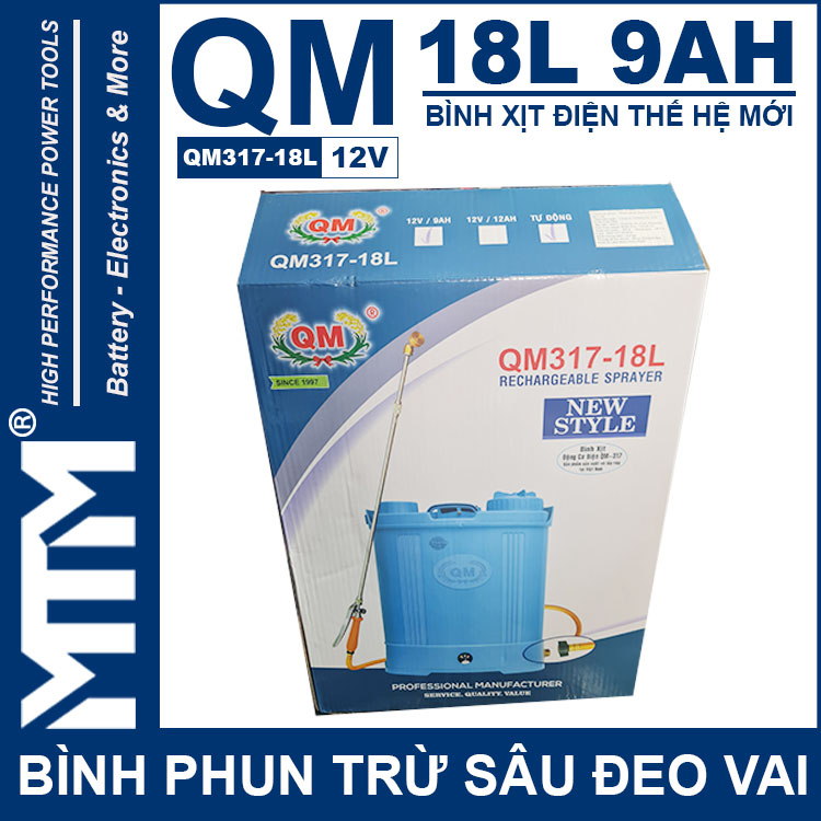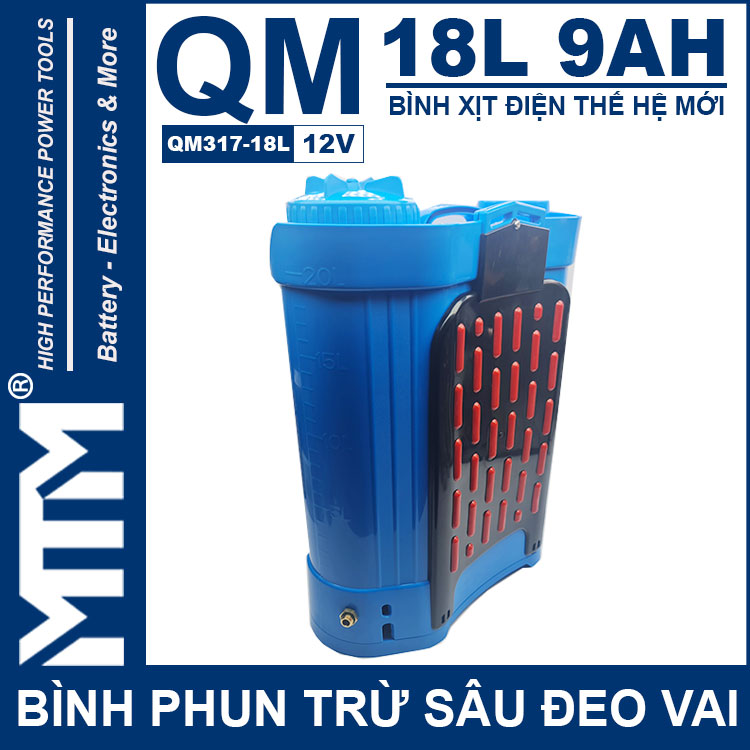 Bình phun thuốc trừ sâu đeo vai 18L 9Ah QM317-18L chính hãng được cải tiến hoàn thiện tốt hơn và mạnh hơn. Với bình chứa nhiều lựa chọn, công suất máy bơm lớn và bình ắc quy dung lượng cao thì bạn có thể phun xịt liên tục rất tiện lợi.