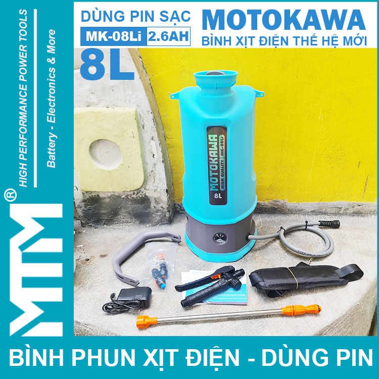 Bình xịt pin thế hệ mới Motokawa 8L 2.6Ah MK-08Li chính hãng