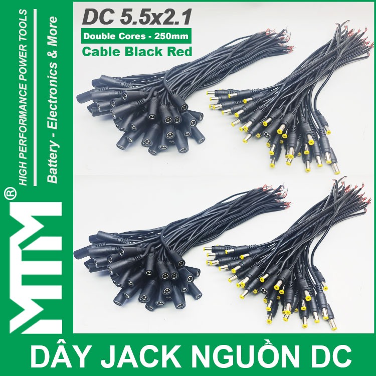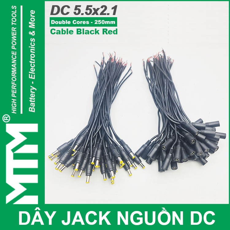 Dây nguồn DC jack 5.5×2.1mm 250mm đuôi cái chất lượng cao ứng dụng rộng rãi. Sử dụng làm dây cấp nguồn đèn LED, dây nguồn camera, dây nguồn pin, dây cấp nguồn thiết bị điện tử, jack nguồn làm DIY và nhiều ứng dụng khác.