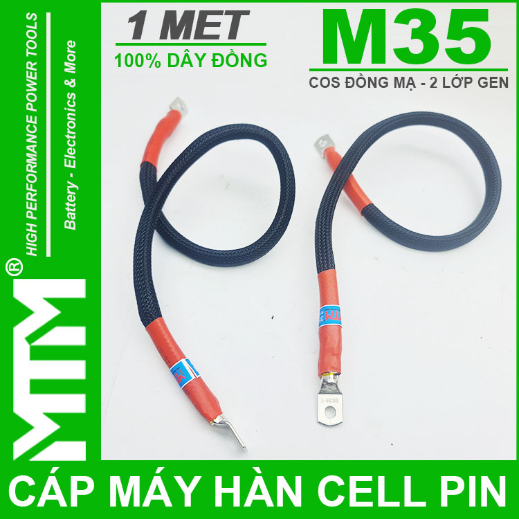 Cáp máy hàn cell pin M35 1 mét – Cos đồng mạ