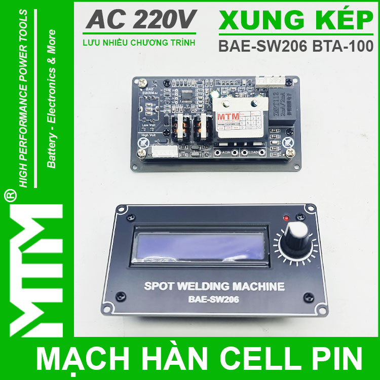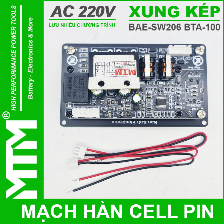 Phân phối mạch hàn cell pin xung kép BTA-100 BAE-SW206 chính hãng giá tốt. Mạch time hàn cell pin này đang được đánh giá rất cao với tính năng ổn định, lưu được nhiều chương trình hàn nhanh, thiết kế cao cấp do Việt Nam sản xuất.