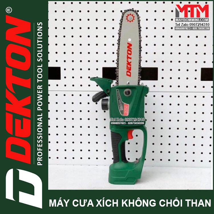 – Máy cưa pin Dekton có hệ thống bơm nhớt tự động để bôi trơn lam xích trong quá trình vận hành máy.