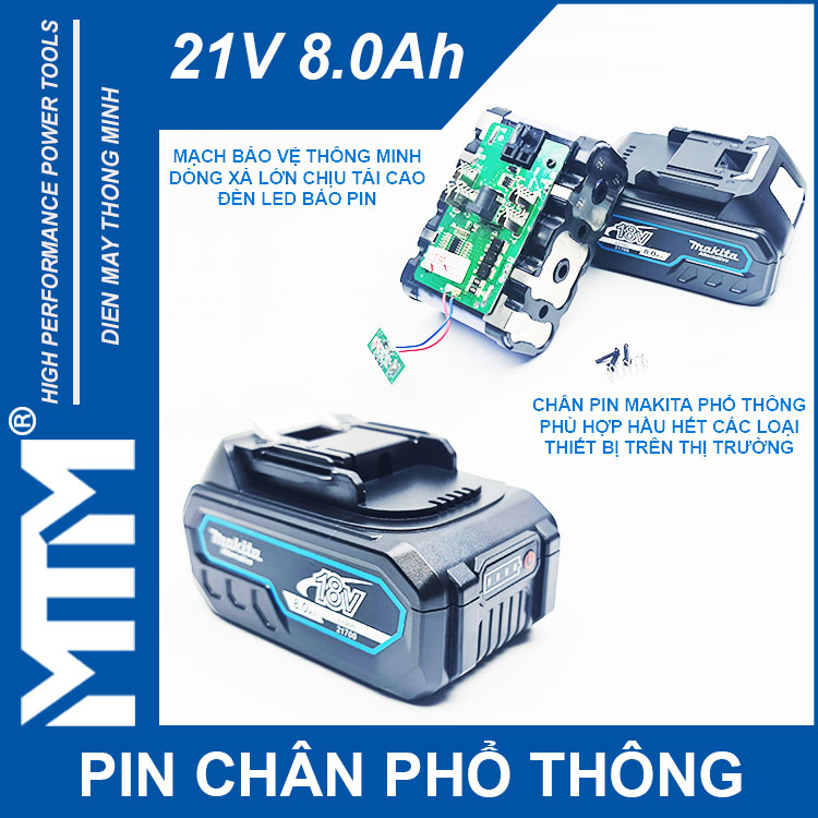 Pin chân phổ thông Makita 18V 21V 8Ah 10 cell mạch 80A led báo pin – Cell Lishen 21700