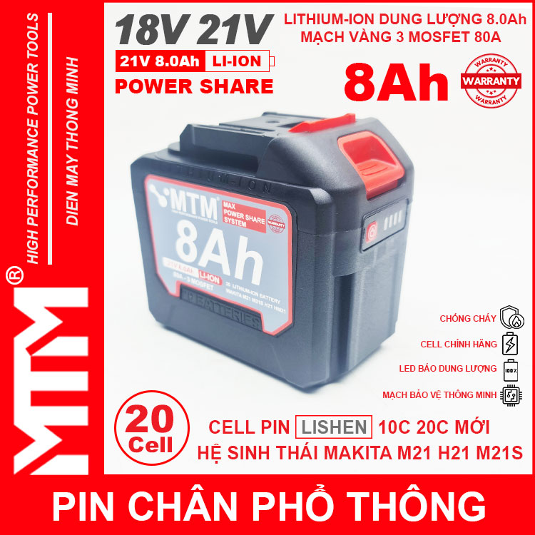 Hãy là người đầu tiên nhận xét “Pin chân phổ thông Makita 18V 21V 8Ah 20cell mạch 80A led báo pin chống sốc – Cell LISHEN”